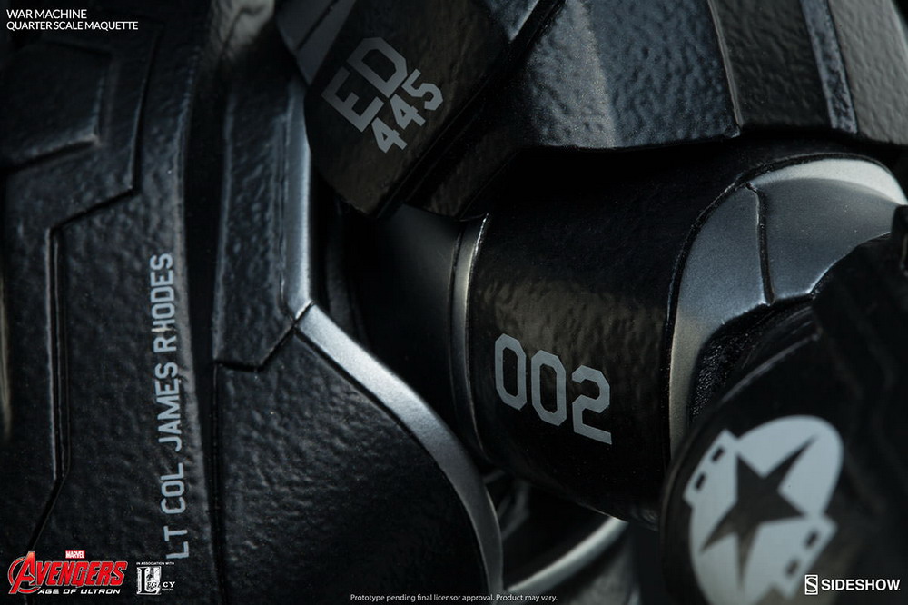 Sideshow presents their War Machine Quarter Scale Maquette. Based on their previously released Iron Patriot Maquette, Sideshow has joined forces once again with Legacy Effects to present the Colonel’s new look as he reports for duty in the second highly-anticipated Avengers film. Standing 22 inches tall with a broken Ultron sentry at his feet, War Machine joins the Avengers in a battle for mankind, as the team faces their most formidable enemy yet…