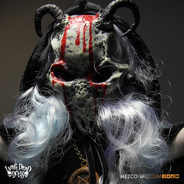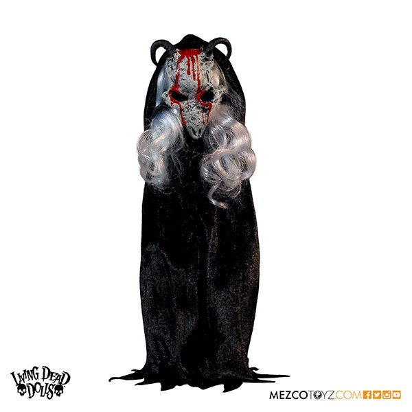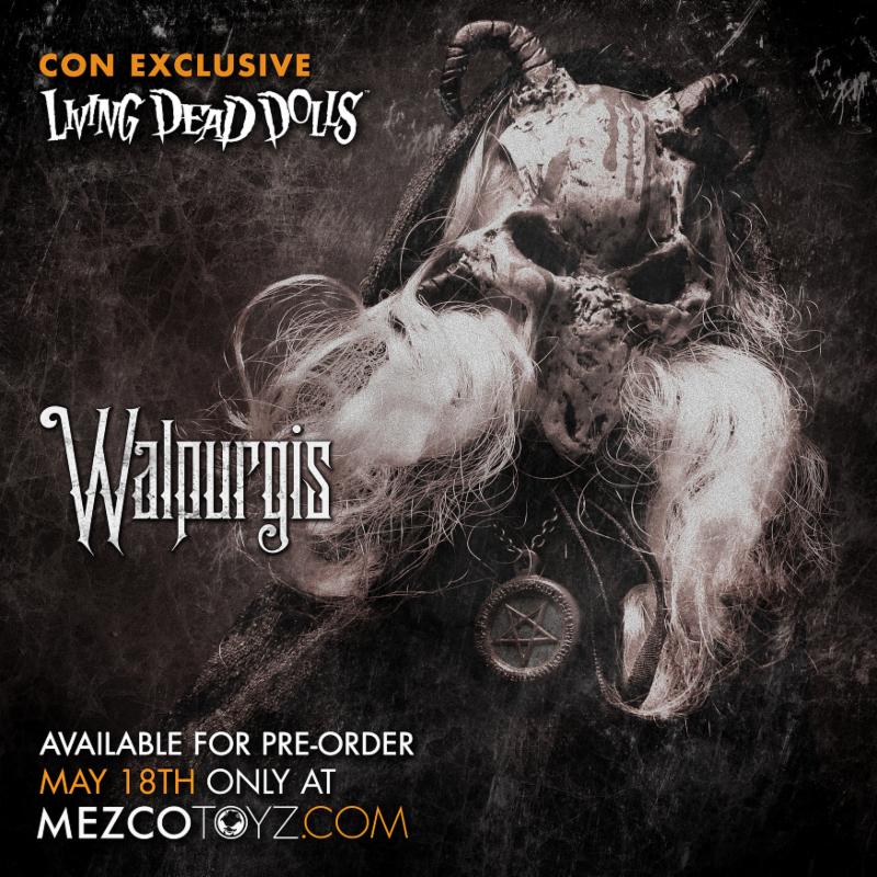 Mezco unveils their summer convention exclusive Living Dead Doll: Walpurgis. Previously available only as an exclusive in Germany, she has been reimagined and now rises from her grave as a limited edition exclusive. Standing 10 inches tall and featuring 5 points or articulation, real cloth clothing, and a removable mask, Walpurgis comes entombed in her own coffin and is complete with death certificate.