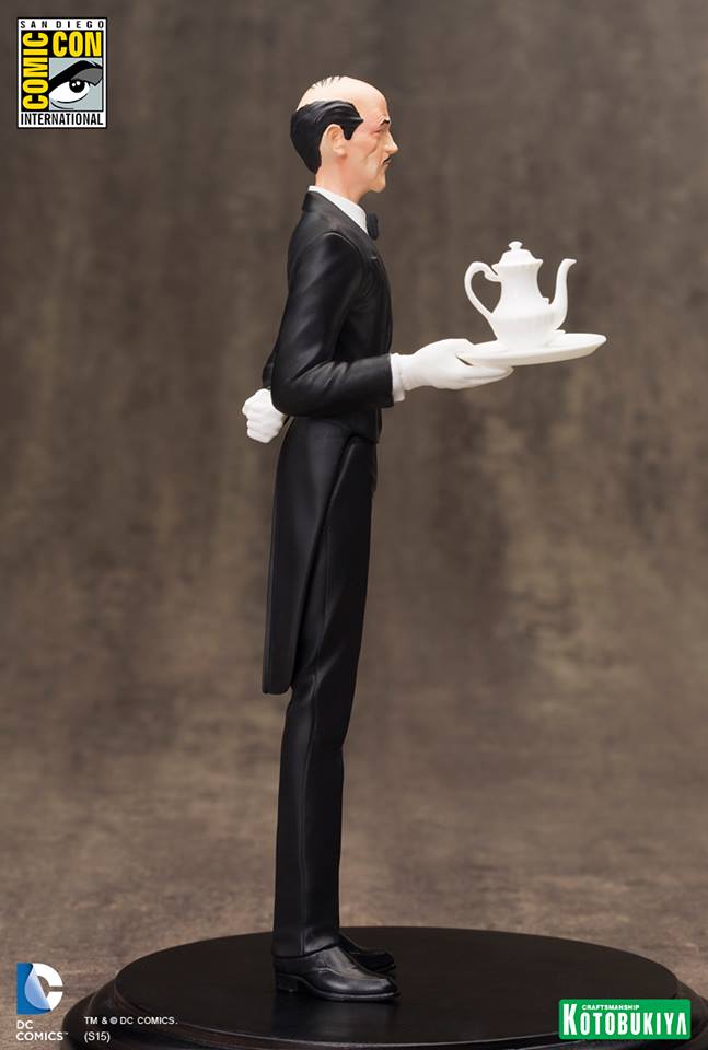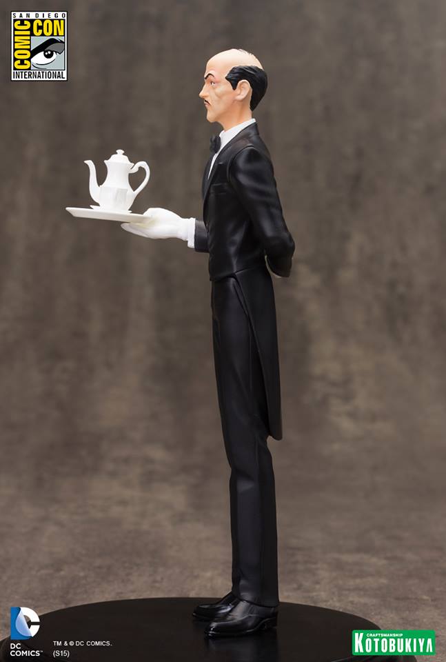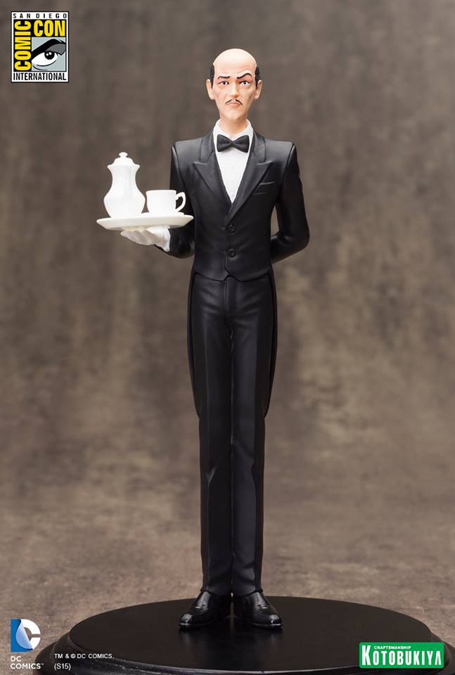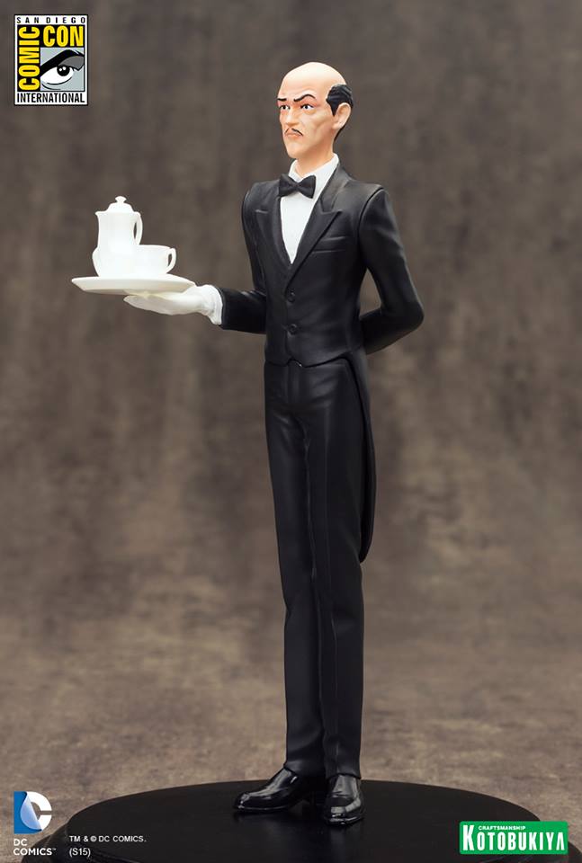 Kotobukiya reveals that their first San Diego Comic-Con 2015 exclusive will be an Alfred Pennyworth ARTFX+ Statue. Though he wears no mask, and his outfit consists of a black suit and bow tie, Alfred Pennyworth has a long history and numbers among one of the most recognizable comic book characters from DC Comics classic stable of Super Heroes and villains.