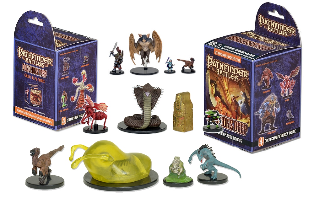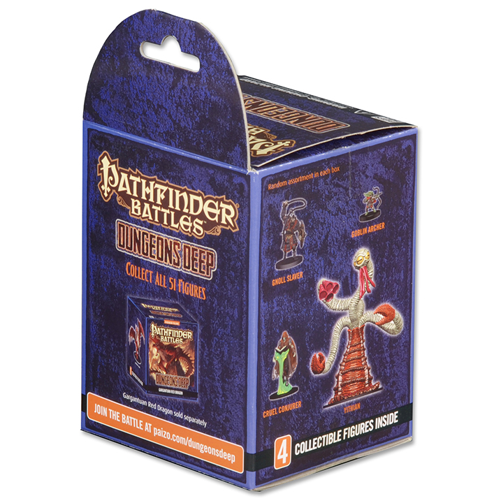 The Pathfinder Battles: Dungeons Deep series comes in two configurations, a standard four-figure Booster Pack (MSRP $15.99USD), which contains 1 large figure and 3 medium or small figures, and the Standard Pathfinder Battles: Dungeons Deep Booster Brick, which contains 8 Standard Boosters (MSRP of $127.92USD for the Brick, which contains 32 figures).