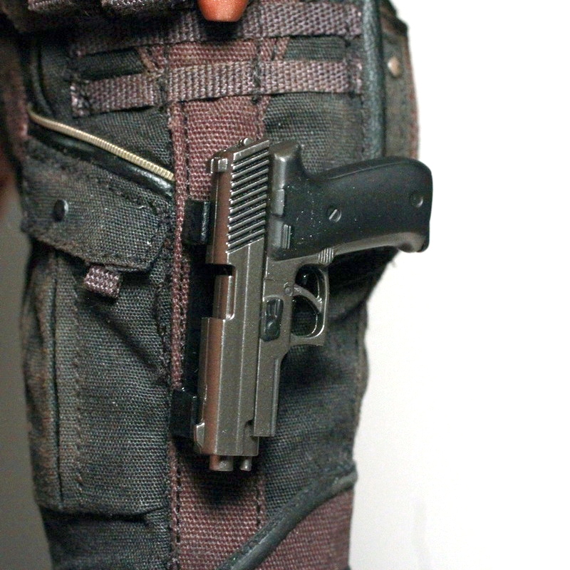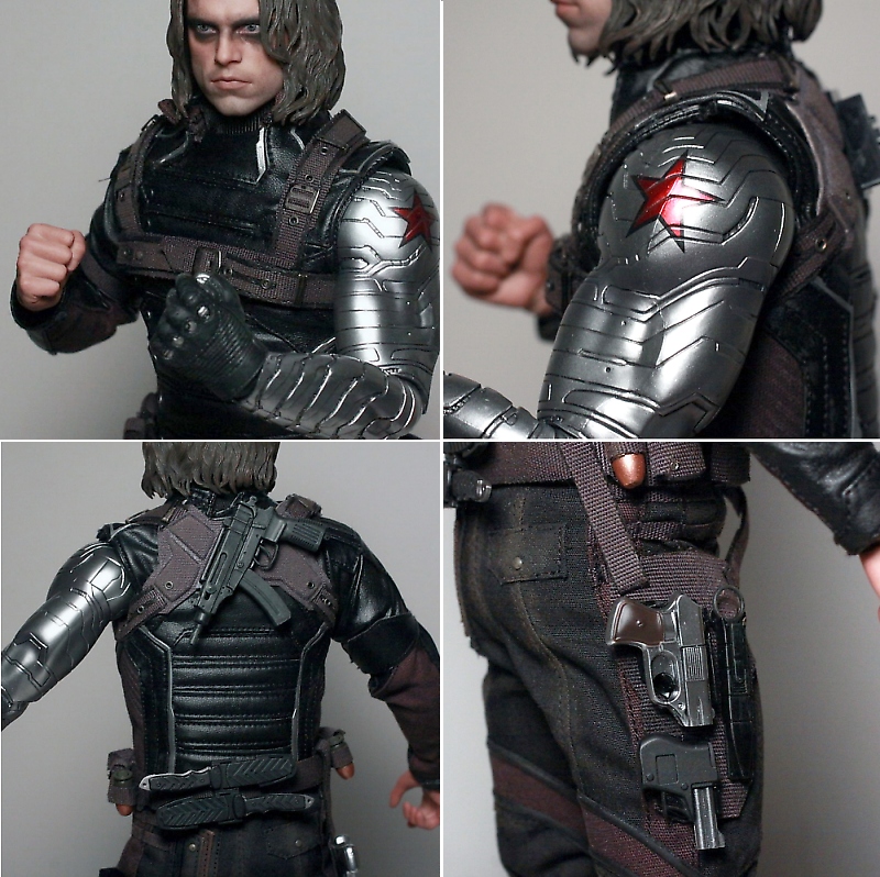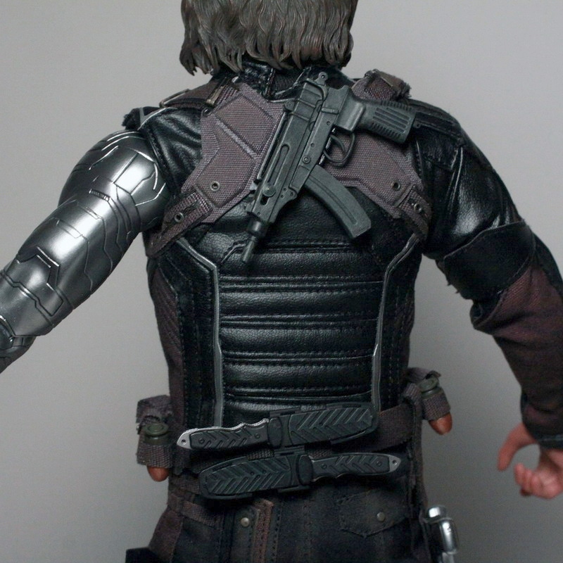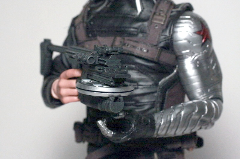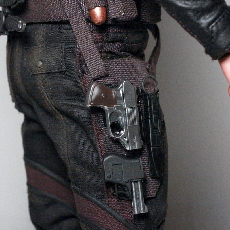A lot of the weapons can be placed all over Winter Soldier’s armor in specially designed places. Some holders work really well but one holster on his left leg won’t hold the pistol at all, popping right off. They’ll stay on okay for the other areas but one tap and you might lose 'em. Definitely a figure for display and not so much handling.