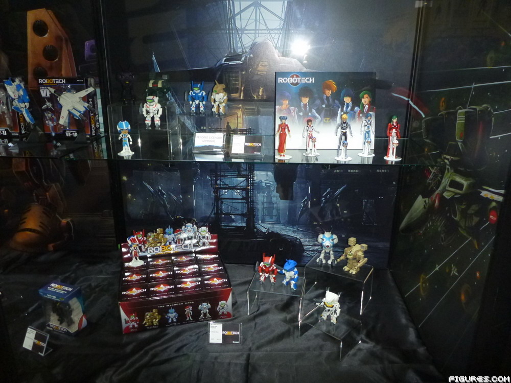 Hopefully you’re still reading, because I saved the best for last. Toynami is planning a line of 4 inch Robotech action figures!!! I couldn’t be more excited for Robotech figures, and the prototypes looked great. On hand were Lynn Minmei, Rick Hunter, Roy Fokker, Max Sterling, and Miriya Sterling. The pilots wear their distinctive flightsuits in their respective colors while Minmei rocks her iconic red dress. The figures have great sculpts and solid articulation (only Minmei is slightly limited due to her dress shape). The pilots will even come with alternate, interchangeable helmeted heads! Look for more info on these very soon and hopefully a release by the end of the year.