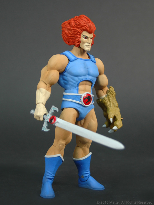 Lion-O marks the return of a new line of Thundercat action figures cast in the same scale as Mattel's Master of the Universe figures. The series will launch in July 2016 with Lion-O. Jackalman will follow in August, with Mumm-Ra as a sub-only figure.