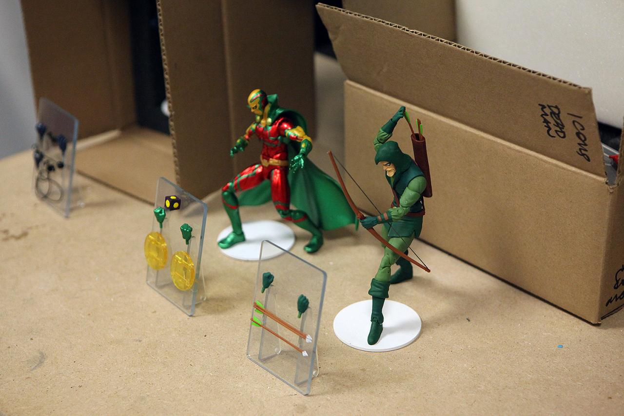 There’s an interesting business side to what the team does in the Model Shop as well, as costs determine what’s possible in a figure and they try to work within the limits to make the most of everything they do. They also take risks with new collectibles formats and innovations like the recently released wooden figures (which my son loves!). We can even let you all in on an exciting bit of news from something we saw in the Doll Hospital. We got a sneak peek at the upcoming Arkham Knight statue from the Batman: Arkham Knight video game, but what the early solicits didn’t tell you is that it comes with removable/interchangeable magnetic parts.