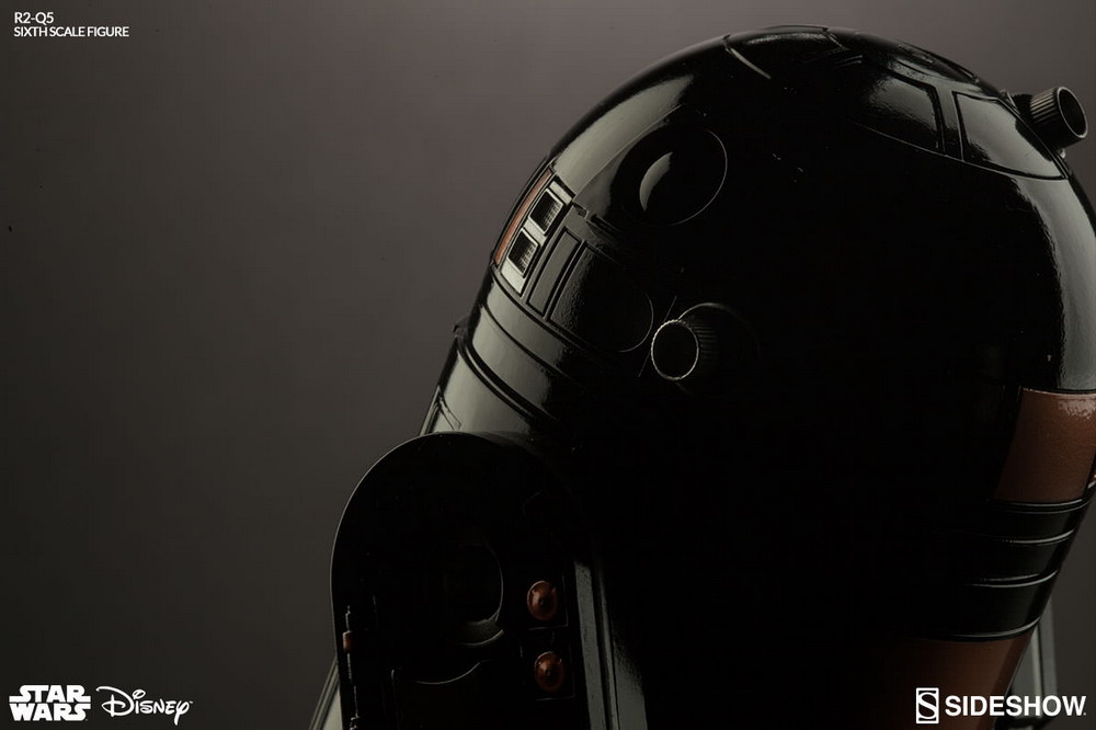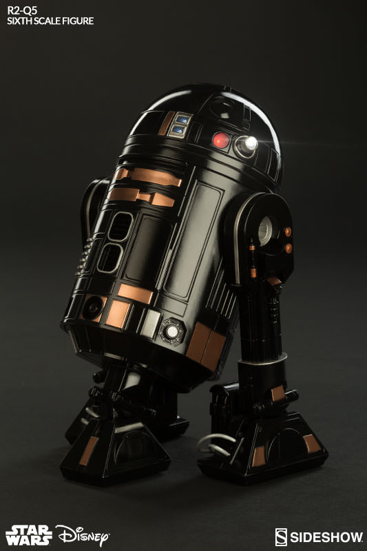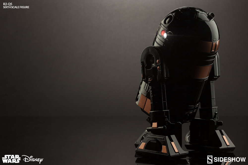 Sideshow presents their newest one sixth scale Star Wars action figure, the Imperial Astromech Droid R2-Q5. Available for pre-order now priced at $139.99, R2-D2's lesser known Imperial counterpart, R2-Q5, played a critical role in the background as a spy for the Galactic Empire. Ready to roll with retractable tripedal treads, hinged panels, and an articulated light-up dome, this delightful droid is perfectly equipped to join the ranks of any Star Wars collection.