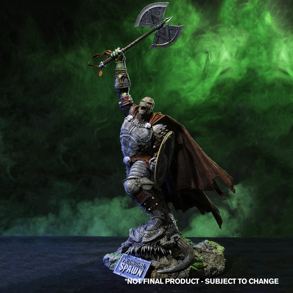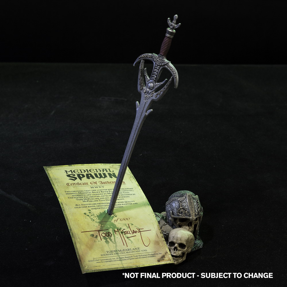 Todd McFarlane and his award-winning McFarlane Toys design group bring the comic hero Medieval Spawn to life in this limited edition, highly detailed, hand-crafted cold-cast resin statue.