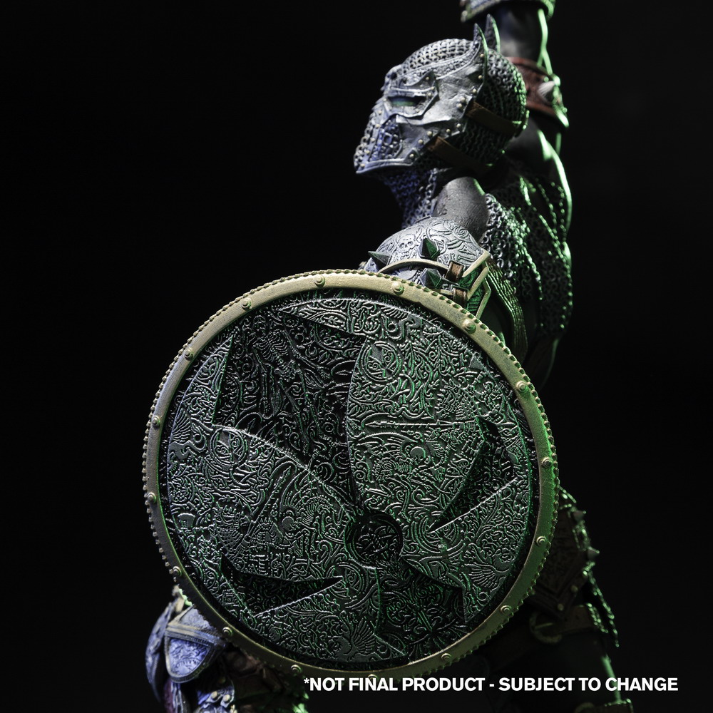 Standing over 17 inches tall, the statue showcases Medieval Spawn in full glory after his triumph over The Violator. Each etched illustration on his armor references not only past issues of the Spawn comic book but gives a historical nod to the inaugural Spawn toy line from McFarlane Toys in 1994.