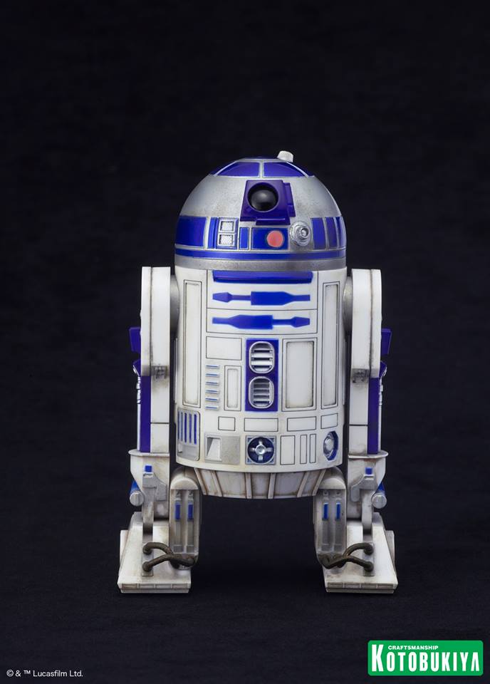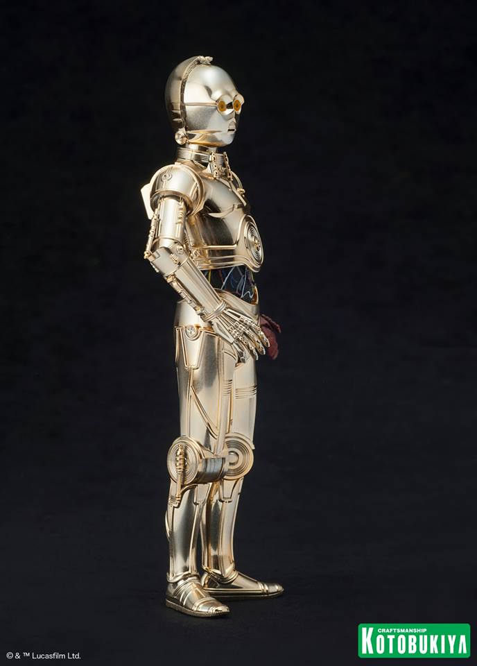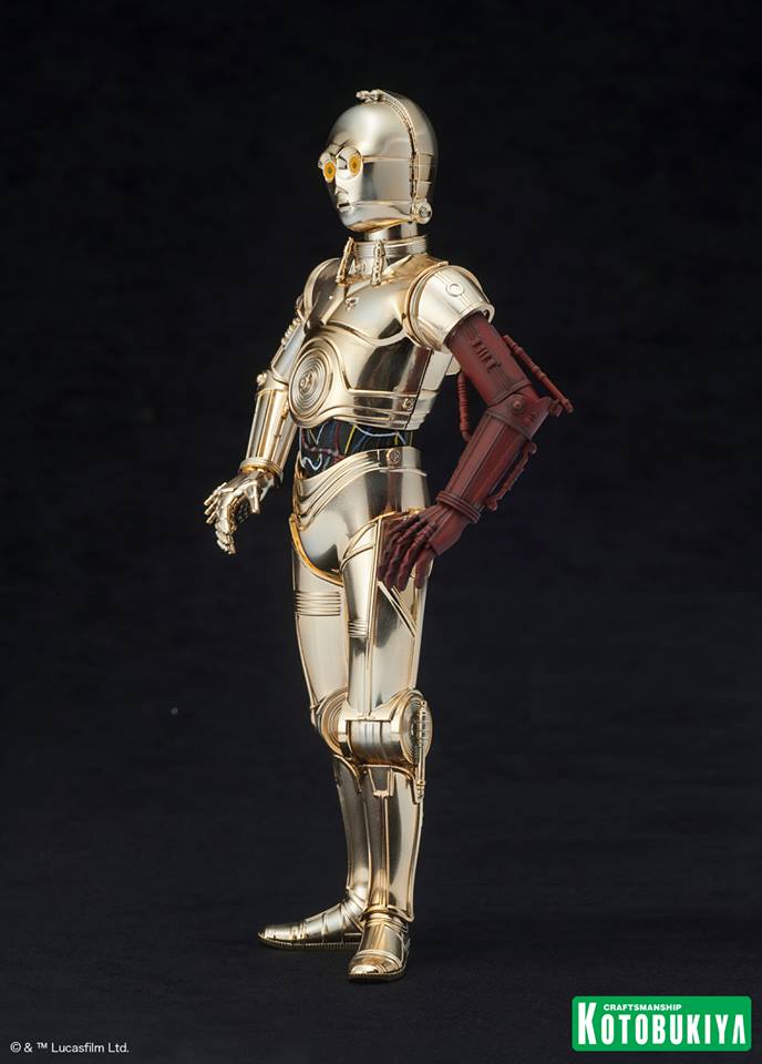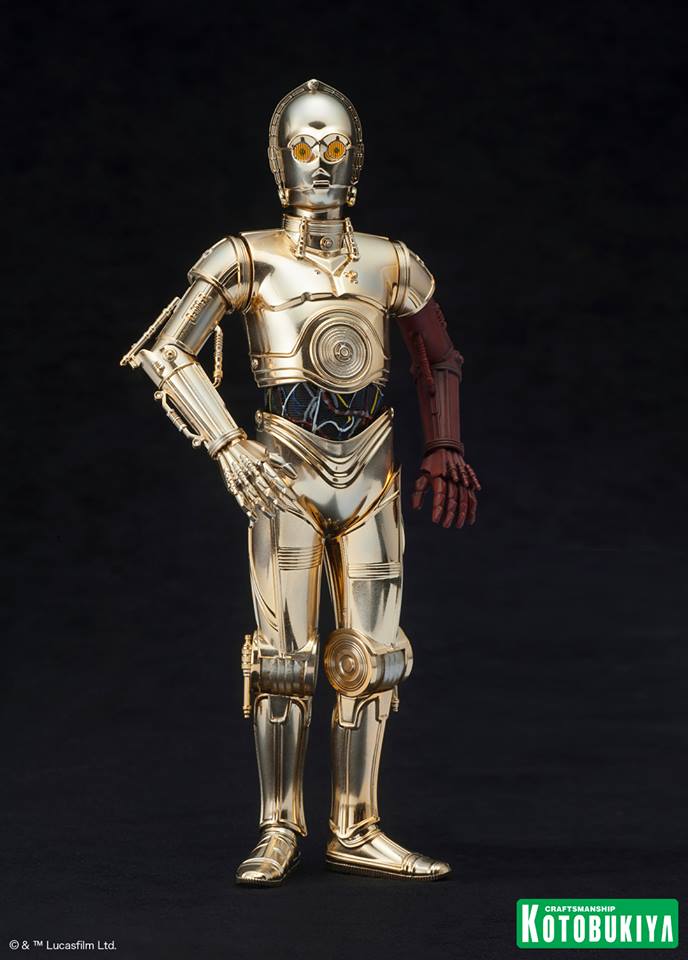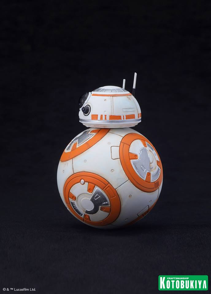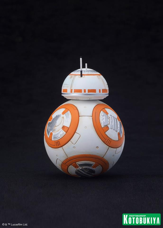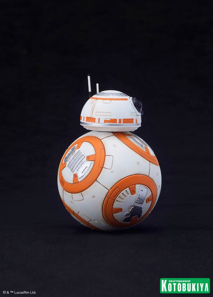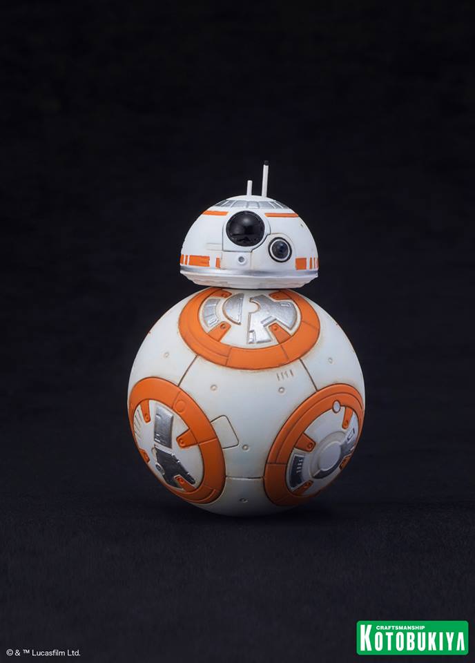 First announced at New York Comic Con (see HERE), Kotobukiya's trio of droids from Star Wars: The Force Awakens receives new painted photos. The ARTFX+ Statue set, scheduled to for release in July 2016 priced at $109.99, includes renown droids C-3PO and R2-D2 featuring their Episode VII appearances, along with the spherical newcomer, BB-8. C-3PO, R2-D2, and BB-8 are perfectly scaled (1/10) to the figures in the ARTFX+ line and they all come with magnets in their feet or lower extremities for extra stability on the included metal display base.