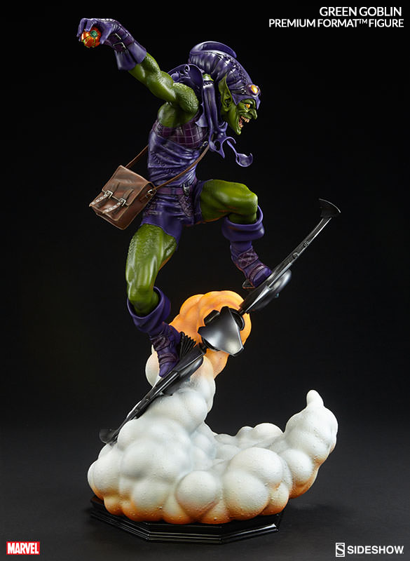 Joining Sideshow's Amazing Spider-Man series of Premium Format statue comes the glider surfing, pumpkin bomb chuckin' Green Goblin.