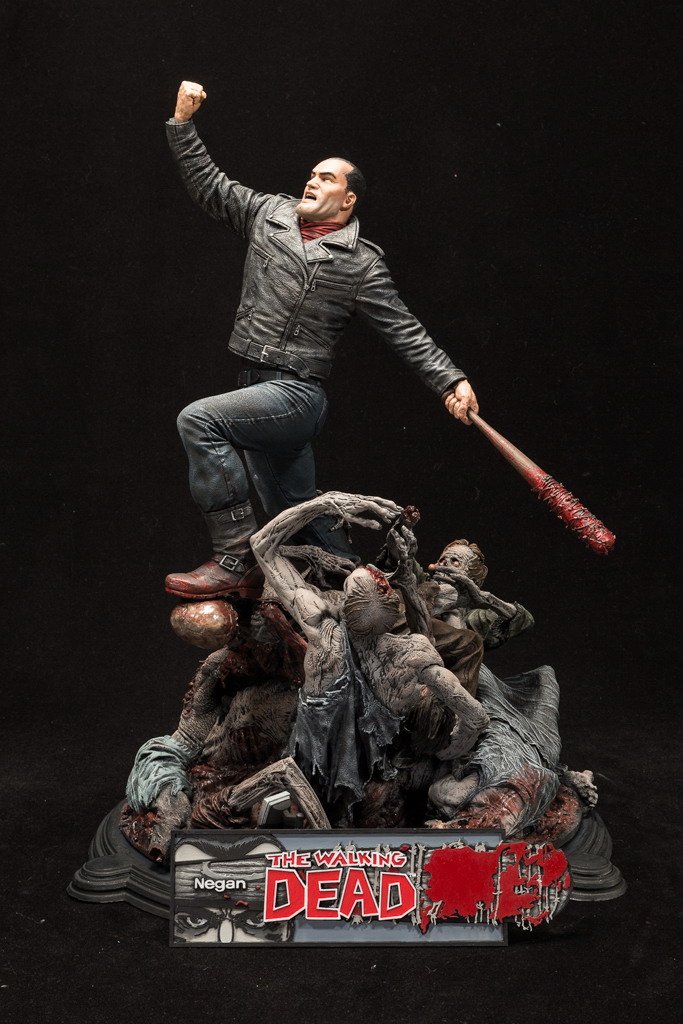 - Highly detailed custom base depicts Negan on a mound of multiple walkers with a nod to Negan’s infamous acts in The Walking Dead Comic series