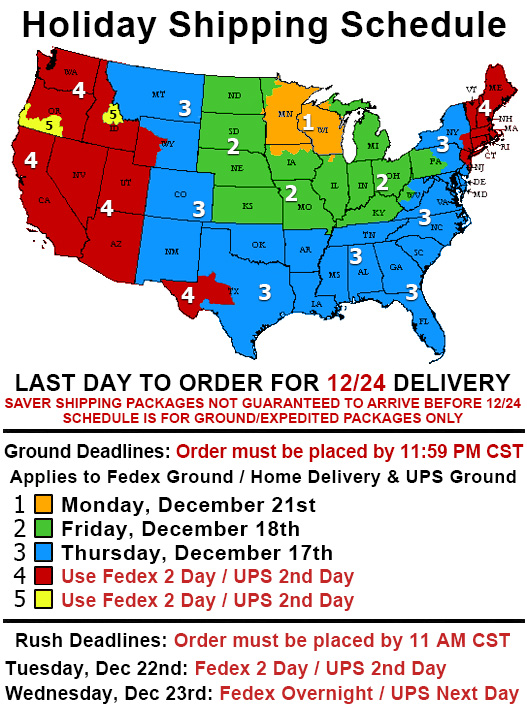 Christmas is coming up fast so if you need that package to arrive by Christmas Eve, be sure to check this handy schedule and choose the correct shipping method for your area!
