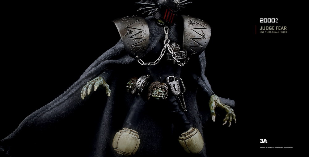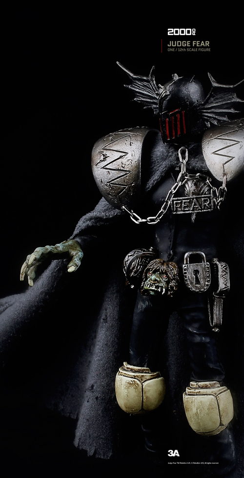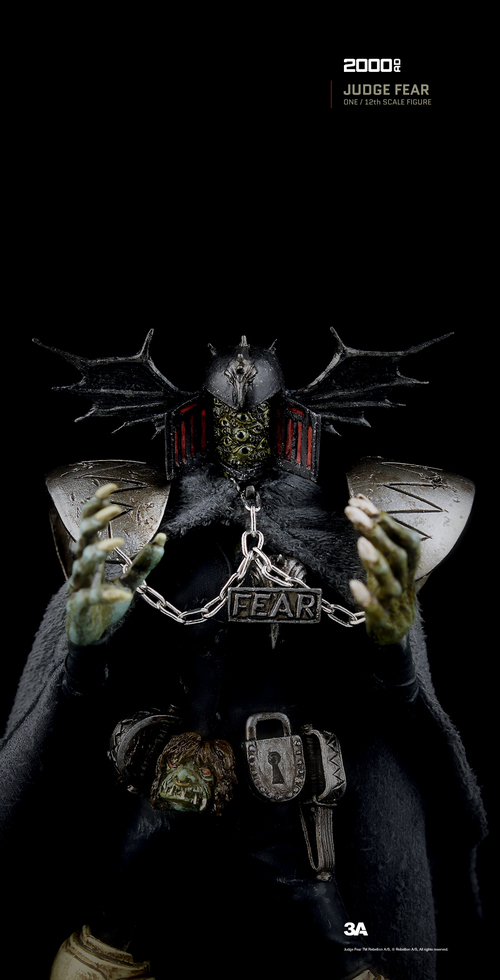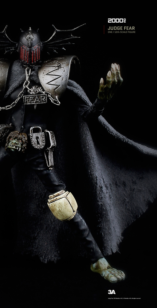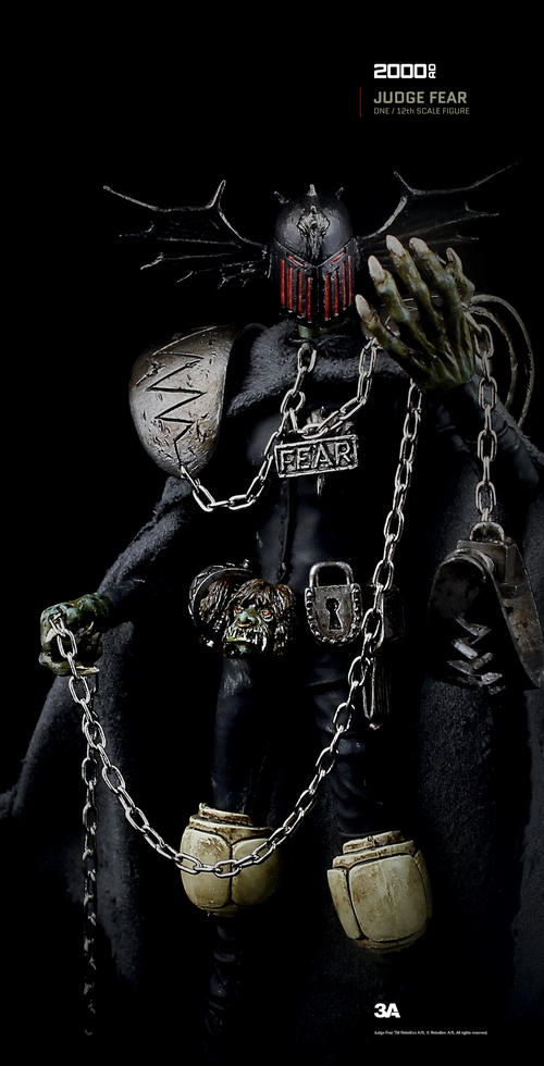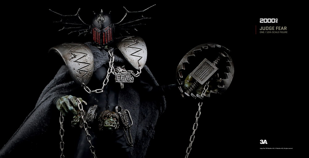 ThreeA Toys follows the release of Judge Death with another Dark Judge: Judge Fear. Hellbent on terrifying all life to death, ThreeA’s 1/12th Scale Collectible Series Edition brings the haunting visage of Fear to life with an incredibly detailed and fully articulated sculpt, gorgeous paint applications, and intricately tailored fabric outfit including real metal chains.