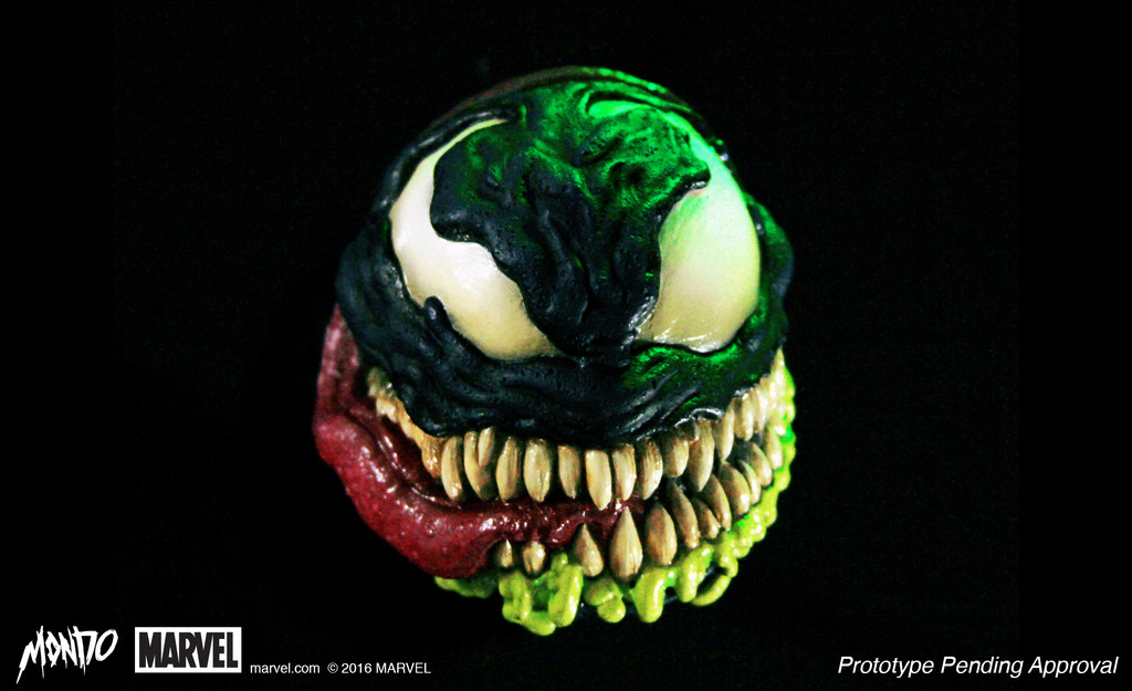 MonodBalls will launch in February with the three Madballs characters that started it all - Skull Face, Horn Head, and Slobulus (pictured above). Pre-orders will be available at mondotees.com with shipping slated for this summer. More characters and licensing announcements will follow this spring, one new MondoBall being Venom from Marvel Comics previewed below!