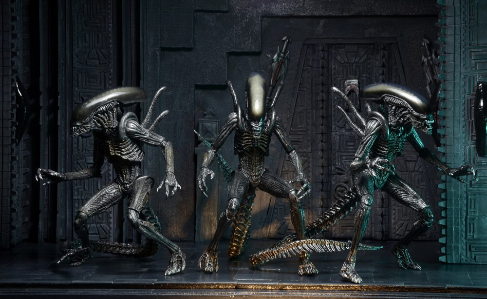 NECA has released a slew of new photos for their upcoming Aliens Series 7 action figure assortment. Arriving late February, this wave stars AvP xenos Warrior Alien and Grid Alien, along with NECA's first concept figure, based on the original translucent design for the Xenomorph suit. The Warrior Alien and Grid Alien feature over 30 points of articulation and bendable tails, and stand over 9” tall. The concept figure features 25 points of articulation and bendable tail, and stands over 9” tall.
