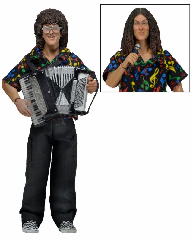 NECA has just tweeted a surprising reveal: a "Weird Al" Yankovic action figure! World famous for his hilarious song parodies, the 8-inch Weird Al figure includes a microphone and his favored instrument, the accordion, along with what appears two alternate heads sculpts: one reflecting his appearance in the '80s and the other his current look. Look for this version of Al this May.