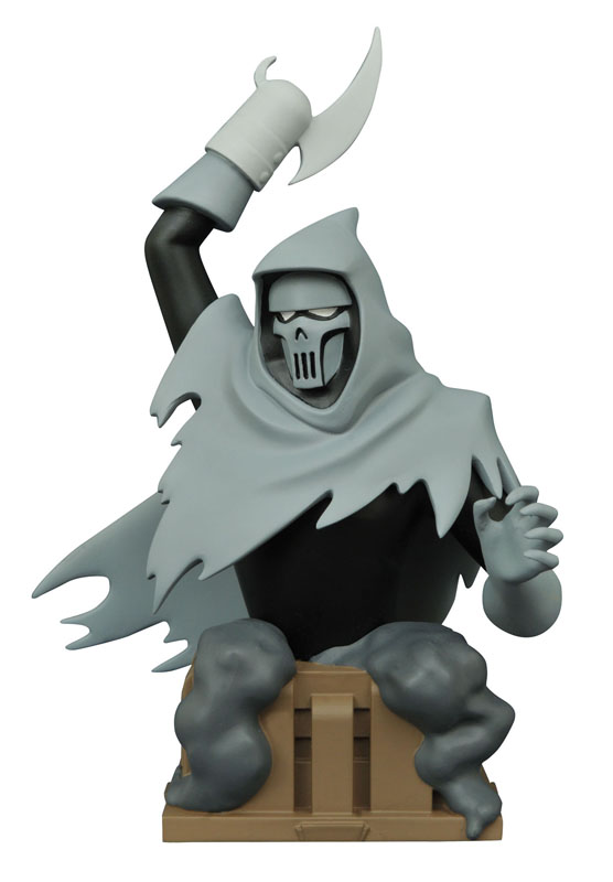 The Phantasm strikes! From the first-ever feature-length film based on Batman: The Animated Series, Batman: Mask of the Phantasm, it’s the first-ever resin bust of the Phantasm! First seen in 1993, the mysterious assassin known as The Phantasm stalked Gotham’s crime bosses until Batman interfered, and now this 6-inch bust can sit on your shelf, atop an art-deco pedestal. Limited to only 3,000 pieces, it comes packaged with a certificate of authenticity in a full-color box. Sculpted by Varner Studios! SRP: $59.99