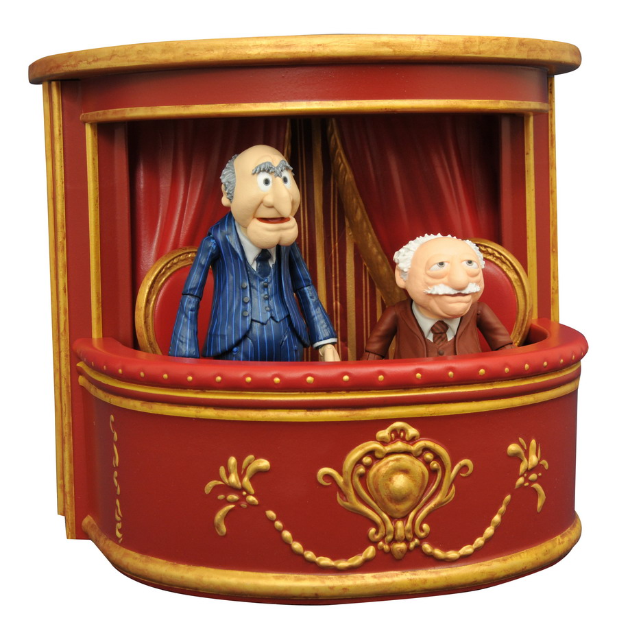 Time to take another bow! The second series of Muppets action figures is even more exciting than the first, with new characters, new accessories and drums, drums drums! Electric Mayhem drummer Animal comes with his drum kit, scientist Bunsen Honeydew comes with his assistant Beaker, and hecklers Statler and Waldorf come with chairs and a balcony! Muppets are in scale to other Select action figures, and range from 3-5 inches tall. Each set comes packaged in display-ready Select figure packaging, with side panel artwork for shelf reference. Sculpted by Gentle Giant Studios! SRP: $24.99