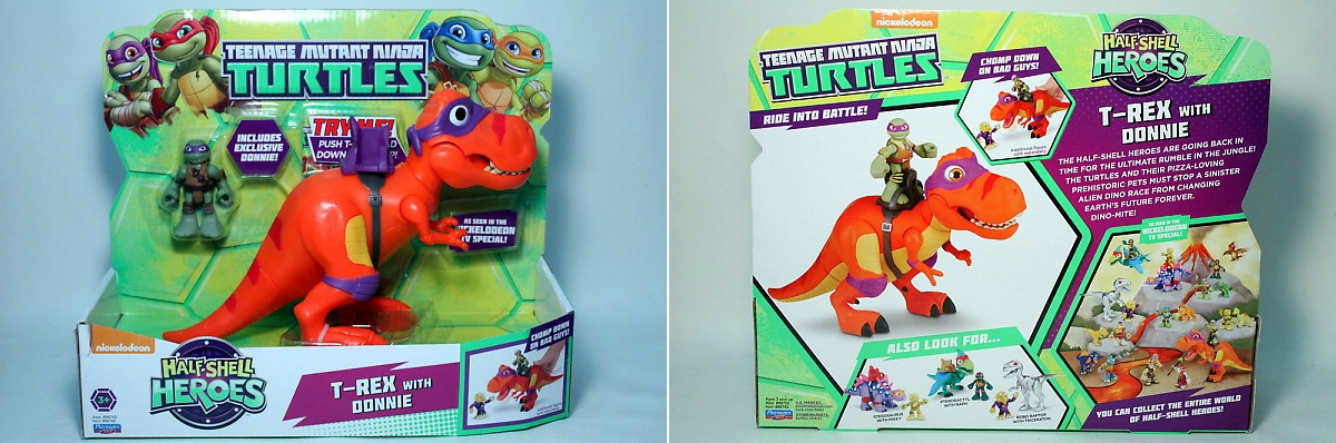 Our favorite Heroes in a Half Shell are back to toy shelves with brand new HALF SHELL HEROES figures with even more dino-fun! Playmates Toys has continued to create a lot more new product for the kid centric Teenage Mutant Ninja Turtles line, and while this isn’t the first time they’ve been paired with dinosaurs, the dinosaurs this go-round are much, much larger! We’ll take a look at four of these toys, all of which are in the $12.99 range with the exception of the T-Rex that comes in at a reasonable $19.99.