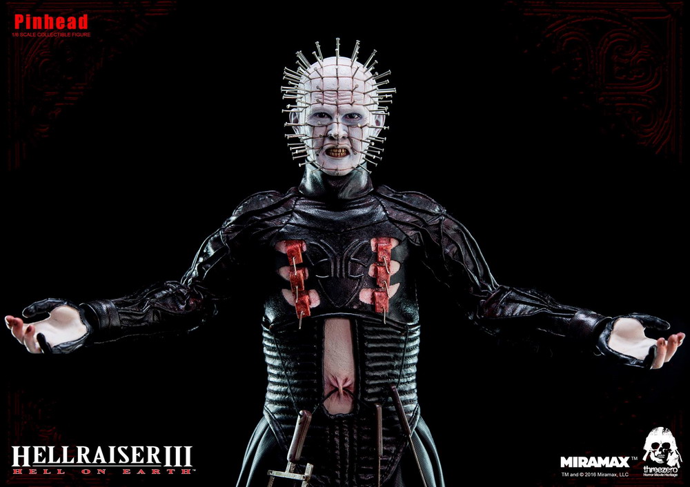 Threezero announces a new 1:6th scale "Horror Movie Heritage" series. The first action figure release will be Pinhead, the Cenobite leader in the Hellraiser film franchise. Pictured above is a new teaser photo of this creepy cool collectible. Further details and photos to come.