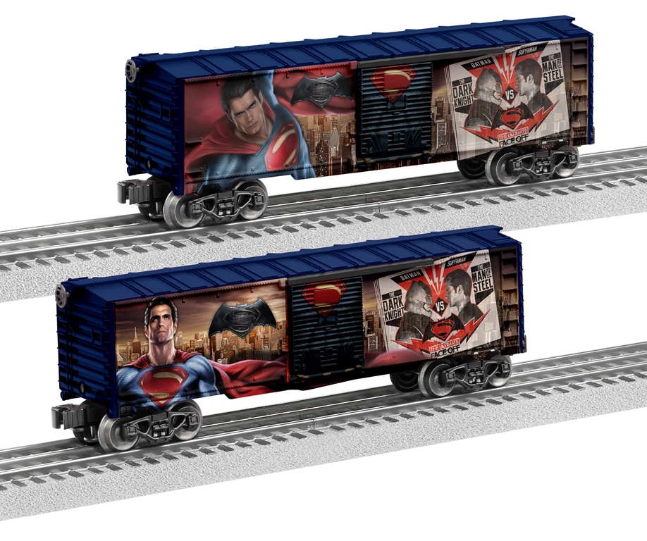In conjunction with Batman v Superman: Dawn of Justice, Lionel has created two special boxcars for fans to show off who their favorite superhero is. Where does your loyalty lie? Are you rooting for THE DARK KNIGHT masked protector of Gotham City or the MAN OF STEEL, caped guardian of Metropolis?