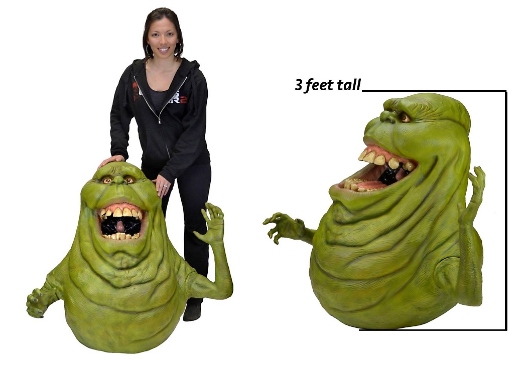 This actual size foam ‪‎Slimer‬ replica figure is based on the 1984 ‪‎Ghostbusters‬ movie and was re-created from original movie molds. The figure measures 3 feet tall and is made of foam rubber and latex that’s carefully hand-painted for realistic detail. Ships in one box, some assembly required. Starts shipping out to retailers in August 2016. It is currently available for pre-order at many fine retailers such as BigBadToyStore.com where it is priced at $599.99.