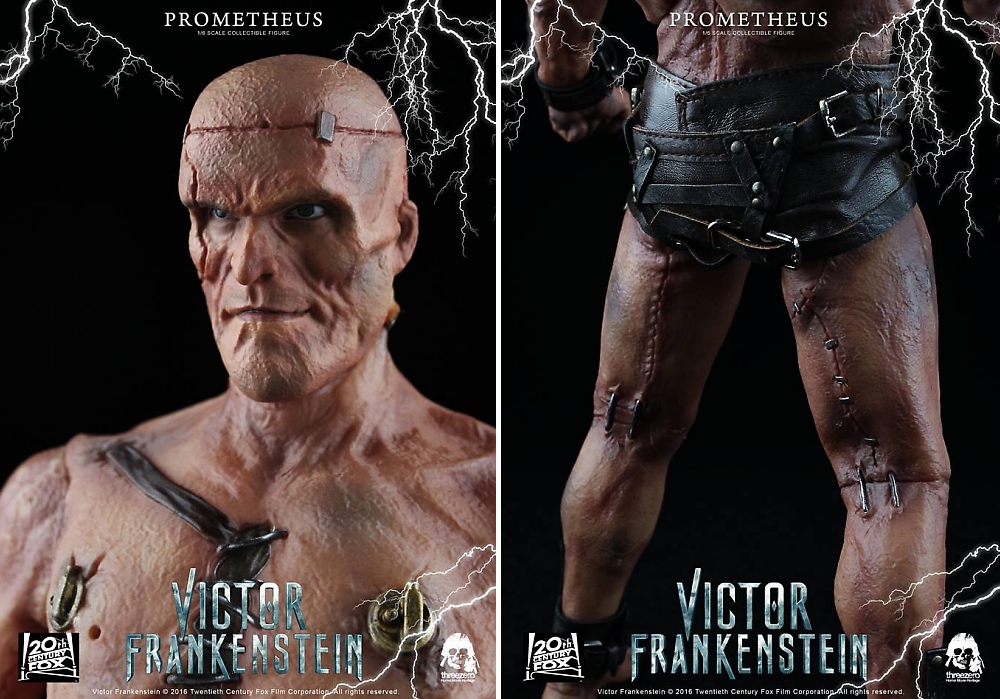 As announced earlier this week, a 1:6th scale Prometheus collectible figure from Victor Frankenstein movie continues ThreeZero's Horror Movie Heritage series. It will be available for pre-order at threezerostore.com starting from April 14th 9:00AM Hong Kong time for $198 (HKD 1540) with Worldwide Shipping included in the price.