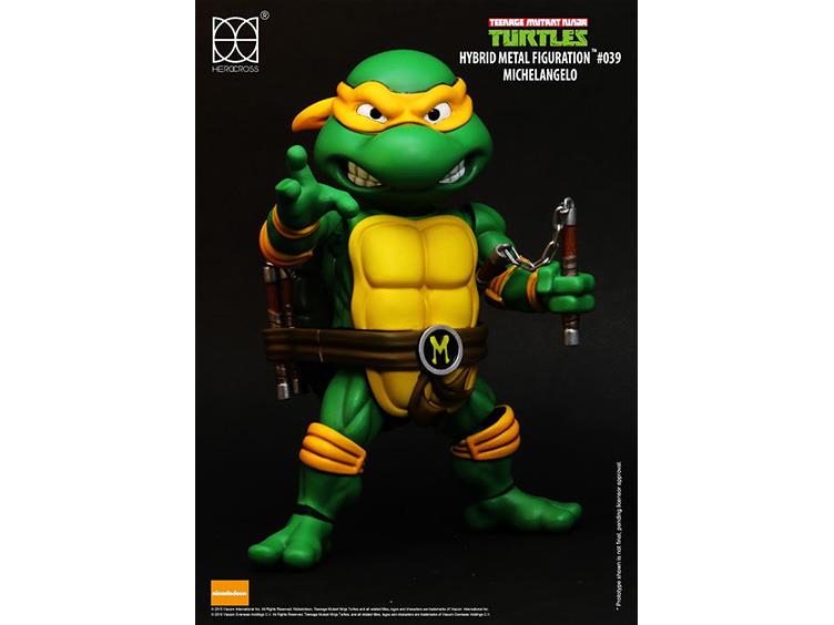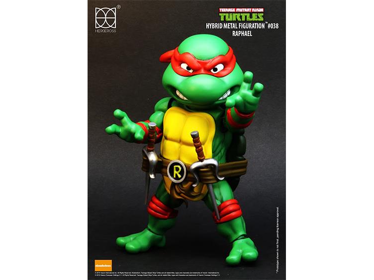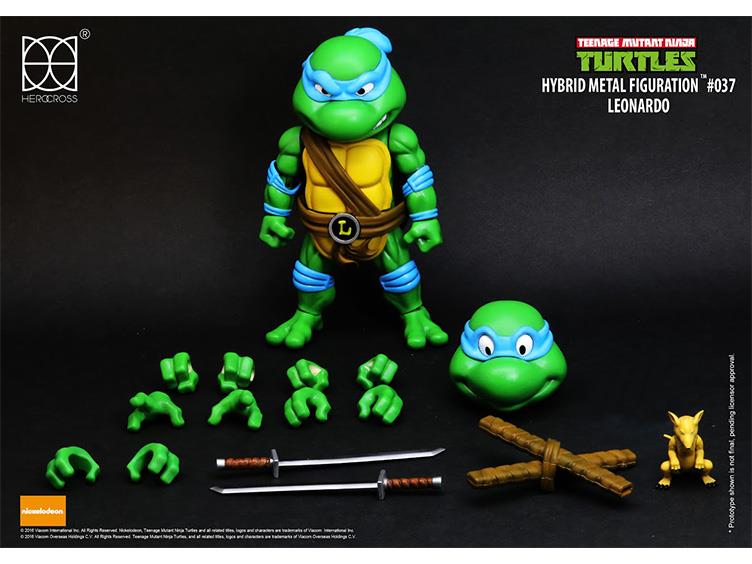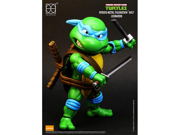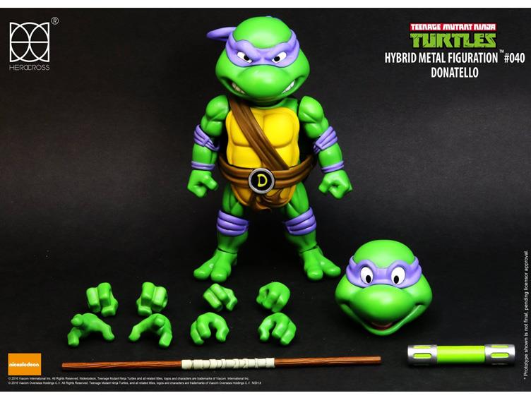 Herocross presents the Teenage Mutant Ninja Turtles as Hybrid Metal Figuration figures. Leonardo, Raphael, Michelangelo, and Donatello each feature a fully poseable hybrid metal body with over 20 points of articulation; giving the figures great mobility to recreate all of their classic ninja poses! They come with interchangeable hands, alternate playful heads and a variety of extra unique accessories.