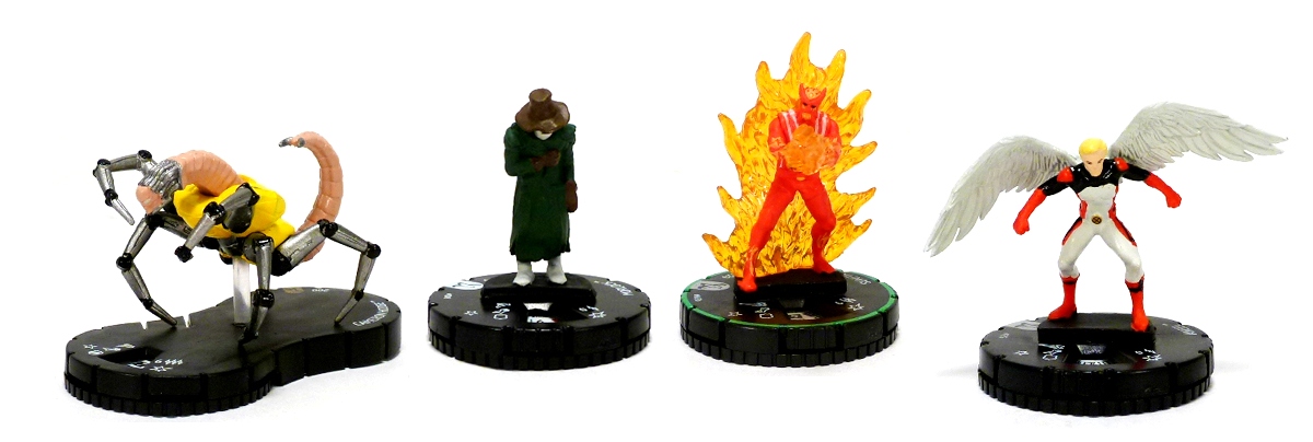 Finally we come to the super rares, the upper limit most of us mortals will find when opening boosters (though if you’re really lucky you might see figures from the next section). The batch of X-Men at this level includes the modern Beast, an amazing translucent Iceman, the soaring Rogue, two versions of the Phoenix (one erupting from the waves and the Prime version comprised of living flame), X-Men/Avengers siblings Quicksilver and Scarlet Witch, and the fey Pixie. Bad guys stake a big claim here with the creator of the Marauders himself, Mister Sinister, and Malice possessing Lorna Dane plus the monstrous cyborg Cameron Hodge and energized Proteus. Lastly there’s a character I was really excited to see, the hero-becoming-heir-to-Apocalypse Dark Angel!
