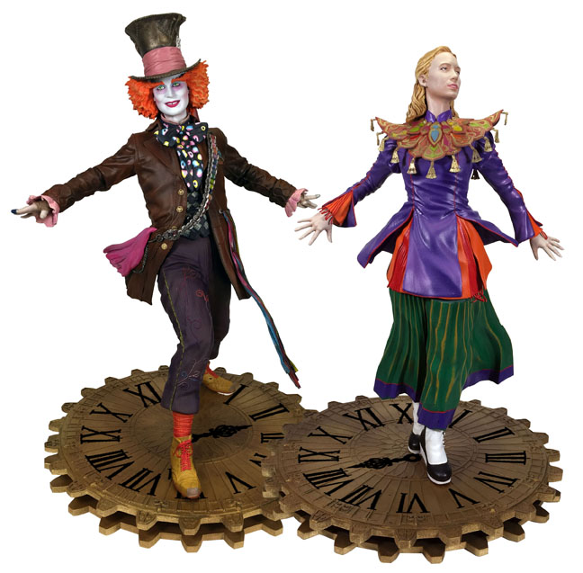Gallery figures just went through the looking glass! Based on the new big-screen sequel to Alice in Wonderland, Alice Kingsleigh and the Mad Hatter are now featured in the hot new Gallery figure line from DST, capturing heroes and heroines from the world of pop culture as 9-inch scale PVC statues! Each 9-inch figure features high-quality paint applications, and each stands atop a sculpted base made out of clock gears – interlock the two bases to form one combined diorama! Each figure comes packaged in a full-color window box. Sculpted by Gentle Giant Studios!