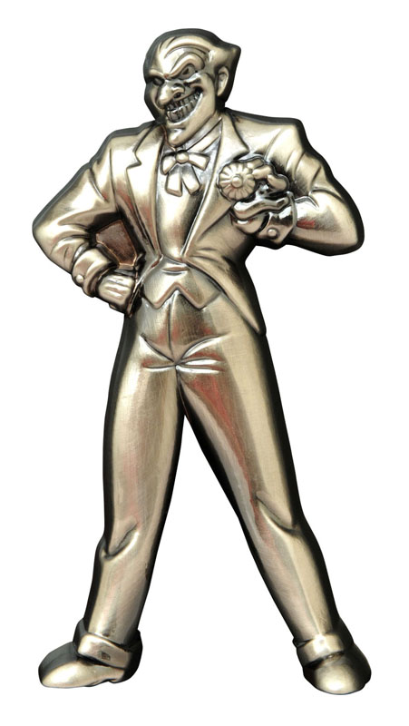 You’ll be laughing all the way to the fridge with this fully sculpted bottle opener of the Joker himself! Based on his appearance in Batman: The Animated Series, this solid metal rendition of the Clown Prince of Crime measures approximately 4.5 inches tall, and removes bottlecaps with the greatest of ease. Plus, magnets on the back keep him stuck to your Bat-fridge so you can nab him whenever you want! Packaged in a full-color slipcase. (Item # JUN162391, SRP: $18.00)