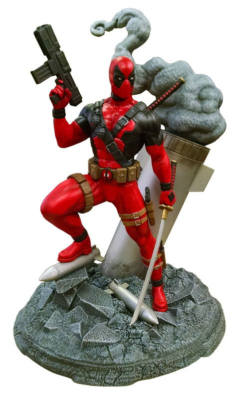 The Merc With a Mouth is now a Merc of Art! Joining the Marvel Gallery line of figures, Deadpool leaps from an explosion, wielding twin katanas, to become the latest dynamic display piece to spring out of the Gallery series! Cast in PVC plastic with high-quality paint applications, Deadpool joins Lady Deadpool, Captain Marvel, Thor, and Ant-Man in the 9-inch scale figure line, and is in scale to all Gallery and Femme Fatales figures. Packaged in a full-color window box. Sculpted by Jean St. Jean! (Item #JUN162394, SRP: $45.00)