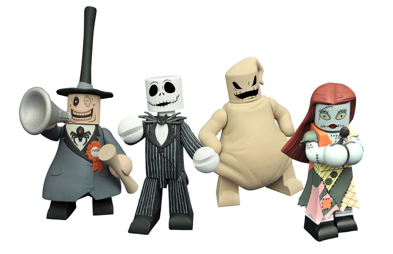Vinimates are the gifts that keep on giving! The Nightmare Before Christmas makes its grand entrance to the Vinimates vinyl figure format with four main characters – Jack, Sally, Oogie Boogie and the Mayor! Sculpted in the style of a Minimates mini-figure, each 4-inch PVC figure strikes a dynamic pose, and features a ball-jointed neck to further customize each pose. Each Vinimate is packaged in a full-color window box.