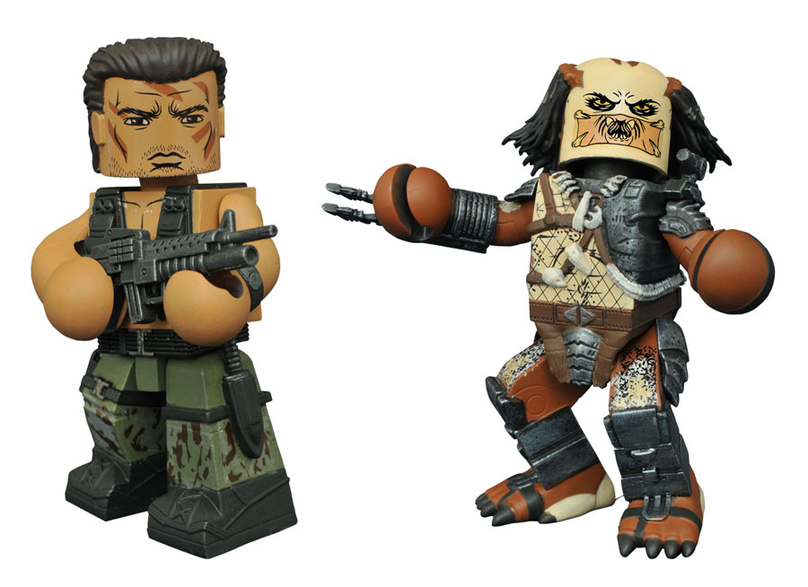 The hunt is on! Inspired by the 1987 action classic Predator, these two new Vinimates vinyl figures capture the hunter and the prey in the new 4-inch scale! Sculpted in the style of a Minimates block figure, these Vinimates of Dutch and the Predator each strike a pose straight out of the film, with ball-jointed necks to further customize your display. Each comes packaged in a full-color window box.