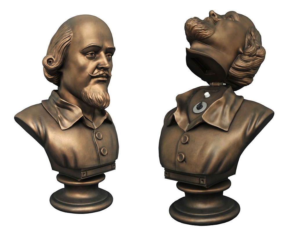 Quick, to the Bat-poles! Okay, so you haven’t installed those Bat-poles yet, but if you keep your spare change in this vinyl bank, you’ll save up for them in no time! Based on the bust of Shakespeare that unlocked the moving bookcase in the Batman Classic TV Series, this 20-inch tall vinyl bank features a working neck hinge, so you can tilt the head back to reveal a dial and button, as well as a real, working coin slot! With a coin access door hidden in the base, no one will suspect that this realistically painted bust is secretly a bank, or that you’re secretly Batman. Packaged in a full-color box. Sculpted by Paul Harding! (Item # JUN162388, SRP: $85.00)