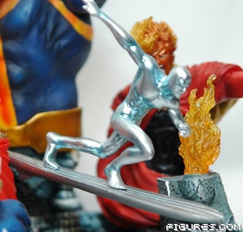 The reds of Dr. Strange's, Thor’s and Adam Warlock's capes, the blues on Captain America's, Spider-man's, and Thanos' costumes, and the silver white of the Silver Surfer's entire body and board all catch the eye and impress while the darker, stone-like paint applications on the temple base give it an aged, relic-like look.