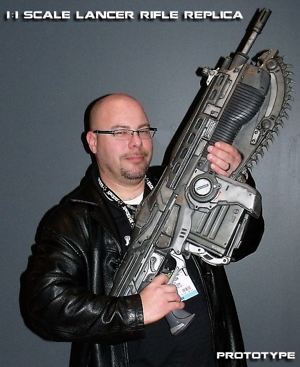 First look at Epic Scale Marcus Fenix Bust and hands-on with the 1:1 Lancer Rifle...
