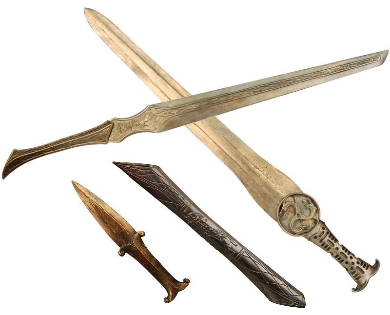 * Prop Replicas: Real metal weapons including Perseus' 27" long sword and his 34" long sword from the gods. Also look for a detailed 9 1/2" throwing knife used by Draco in the film and the 10 1/2" baton of the gods.