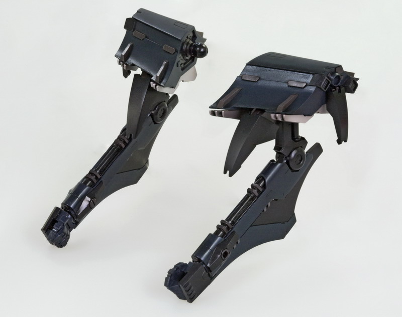 The Stasis is tall and lean, with long thin legs and heavy shoulder armor. In fact, the unit's unique forward-bending legs are equipped with the "LG-LAHIRE" knee locking system allowing the model to stand up in a wide array of poses without external support. When it's time to attack, the MP-0901 missile system opens up just like in the game. Ready for battle, the Stasis comes with plenty of weaponry and the head, core, legs, arms, and rifles are all new parts. Standing 9 ½ inches tall, this fearsome unit is comprised of approximately 400 parts extreme poseability.