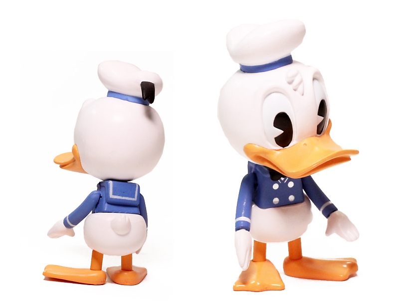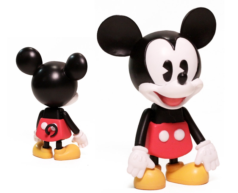 Each Cosbaby has some points of articulation: Neck, shoulders, wrists, and legs. The leg joint is pretty free though so you can rotate the toes in any direction. There is a waist joint but depending on the character, you may not be able to use it. Mickey and Minnie both come with separate sculpted shorts (or skirt) and their tight fit prevent any real waist turning of any sort.