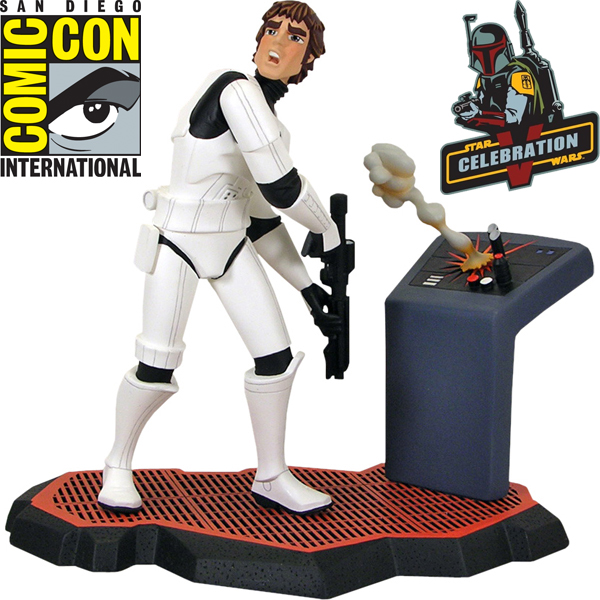 The Exclusive Star Wars Han Solo in Stormtrooper Disguise Detention Block Animated Maquette, priced at $90, will be offered at the following events this summer: