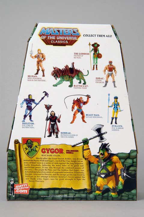 Originally based on the "Big Jim Gorilla" (much like Battlecat or Zoar) Gygor was set to be a large gorilla figure in the 1982 line. While he was cut due to logistics, we are proud to present the first ever MOTU Gygor figure in the new Classics line. Truly, this is what the MOTUC line is all about.