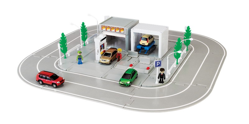 Players can build a Hypercity to protect and serve with a fire station, rescue with police headquarters and three rescue train liners fully equipped for an emergency, and drive TOMICA cars officially licensed from Toyota, Nissan and Suzuki. If players have car trouble or need to fill up, they can drive into the TOMICA repair garage or gas station. As an added bonus, the TOMICA car and train system features a robust combination of auto- and locomotive play, teaching kids the rules of the road, and helping them expand their imaginations with massive building potential.