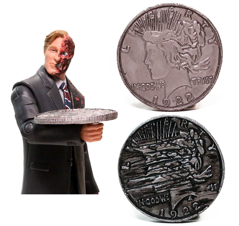 Two-Face is well articulated and decently painted for a mass-market figure, featuring approximately 22 points of articulation. In the accessories department, Two-Face is a bit lacking. He comes with a large double sided coin (one side scarred) for YOU to flip around.