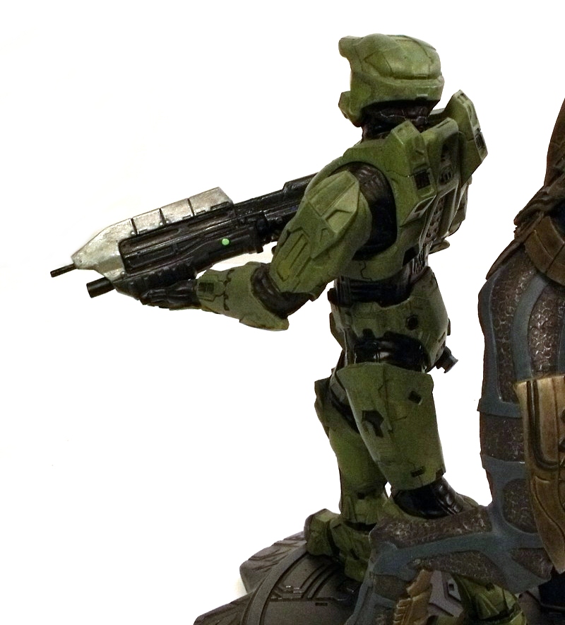 The matte colors ground the statue in realism and allow the few reflective accents - the MC's gold visor, Arbiter's sword and eyes - to literally shine through. Additionally, the toned down colors really help bring out all the sculpted armor detail, something you have to see up close and in person to truly appreciate.