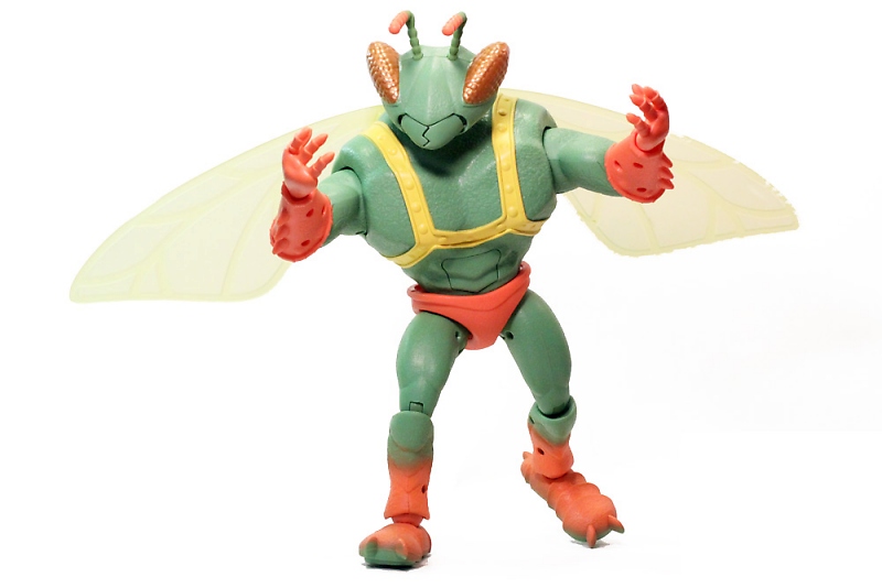 Twitch's skin has a scaly texture to them which could have been a bit more exaggerated but looks good overall. His wings are of clear plastic and very sturdy which I appreciate. The wings are part of an action gimmick on his stomach that doesn’t help the overall look of the toy, as the button wasn’t a part of the movie Twitch’s design. Another action gimmick is the ability to make use of his ferocious chomping mandibles by pushing down on his head. It's a great feature since he does use his mouth in the film; it's not every day you can simulate your toy talking.