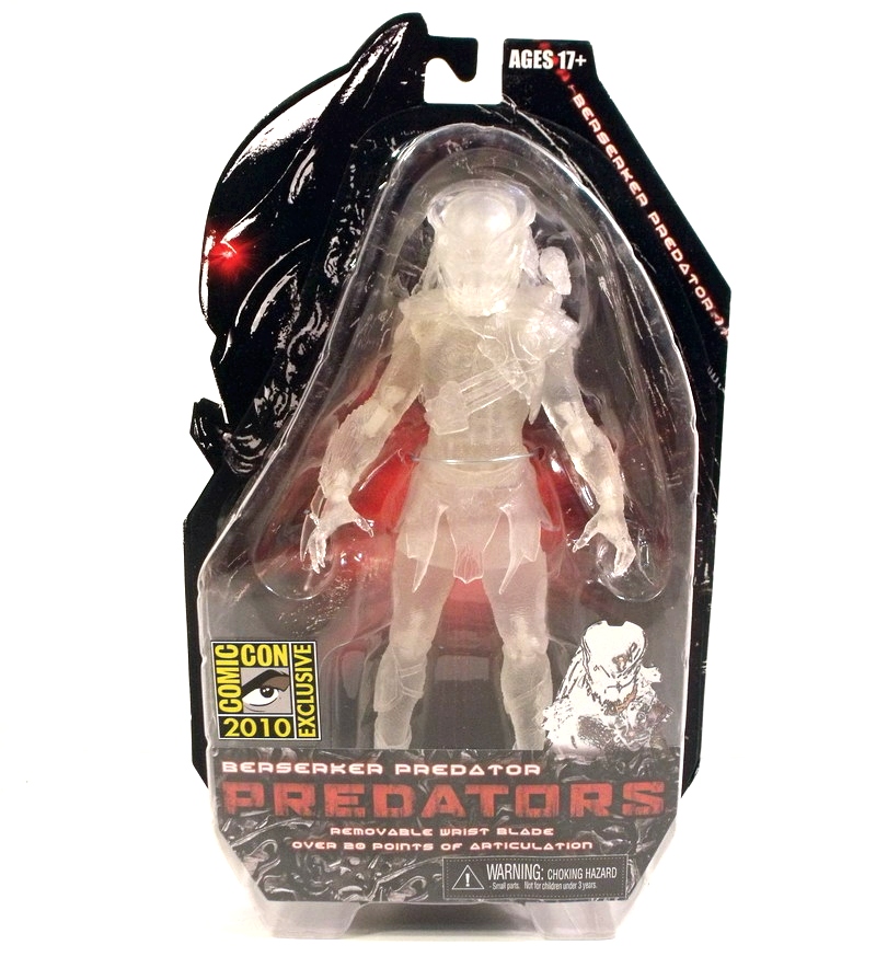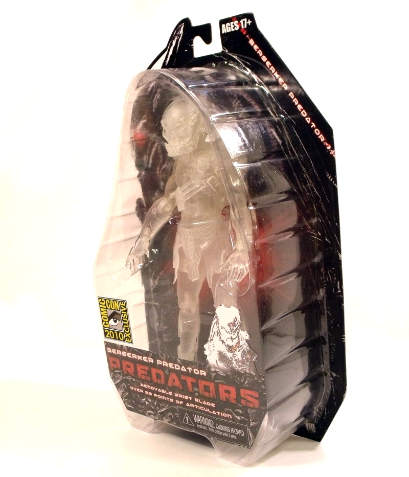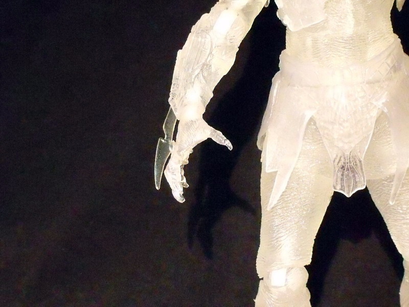 The Stealth Berserker is a varaint of the fully painted Series 1 figure cast in totally clear plastic, unlike NECA's Half-Stealth Wolf Predator released as an exclusive back in 2008 (read our review on that figure HERE). The translucent effect works well for mimicing an invisible character, or a cloaked one as the case may be. I found the partial cloak effect on the Wolf more inspiring, but collectors will no doubt want to add this figure to their collection after seeing the movie - the Berserker is one bad hombre and is guaranteed to be a fan-favorite, cloaked and non.