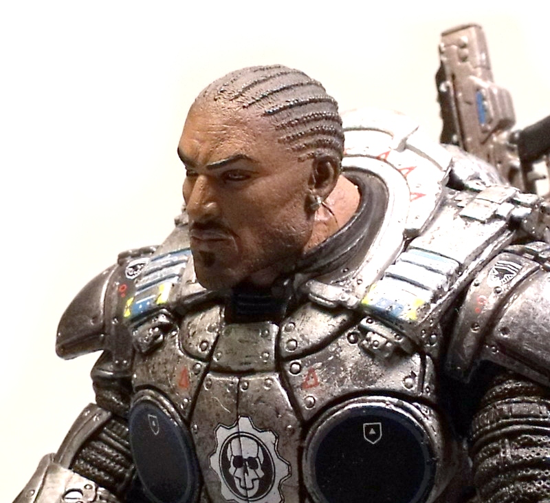 Just look at the mug. NECA's sculptors captured rock solid determination and overall badassery with this portrait. The character's cornrow hairstyle and silver studs further define Jace's tough look, making this figure a unique new addition to your COG army.