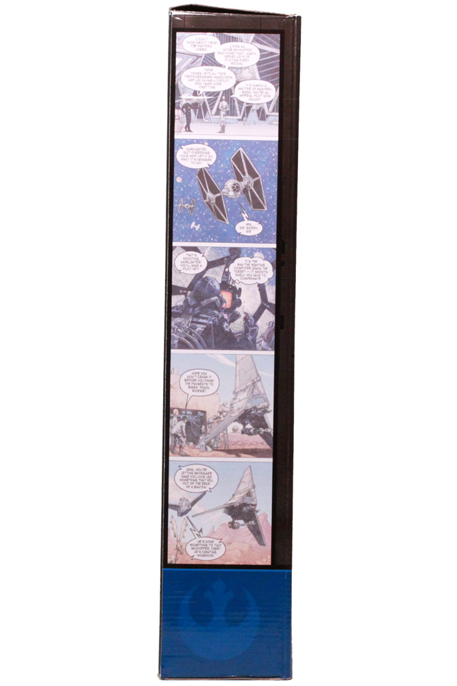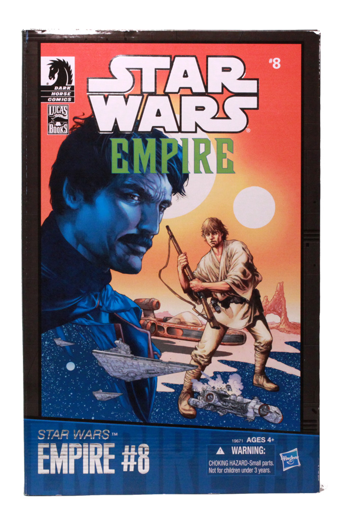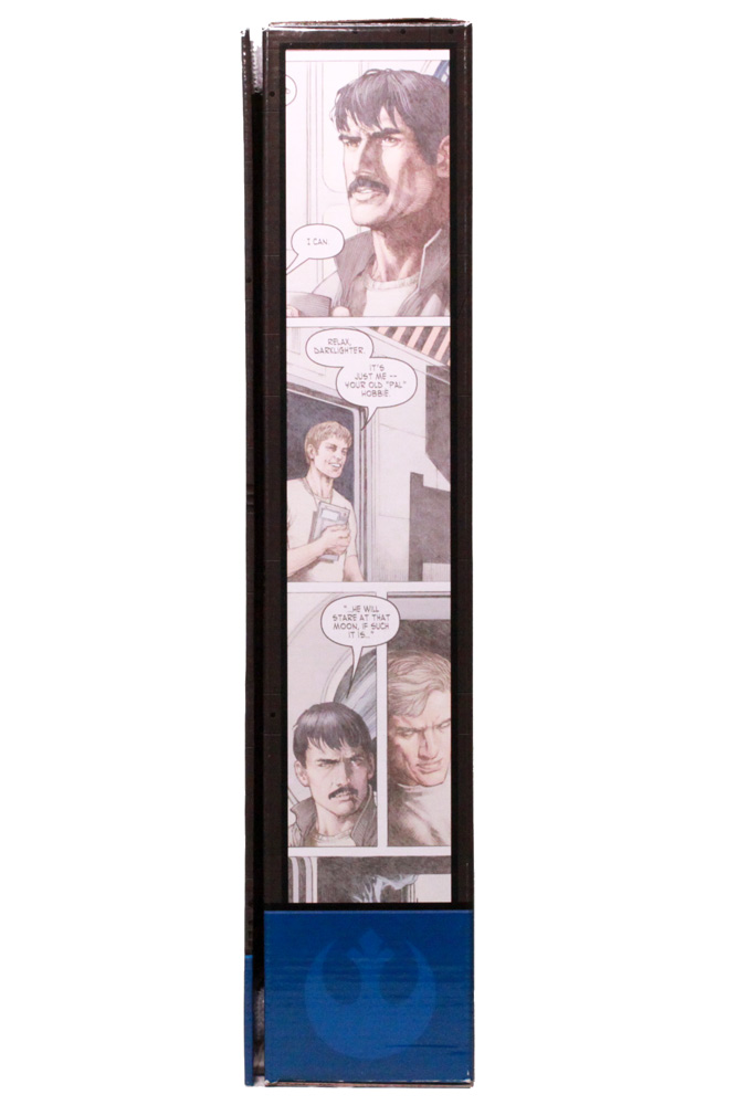 The packaging for this comic pack is quite attractive but at the same time a bit excessive (but we all like excessive here). At its core, the comic pack is the same style comic packaging you'll find at the retail outlets which is a large size card and bubble pack. The outer box that Hasbro created keeps this set in pristine condition and allowing clear views of the toy within. The front of the box features the comic cover art in full while the sides feature some comic panels which is a rather nice touch.