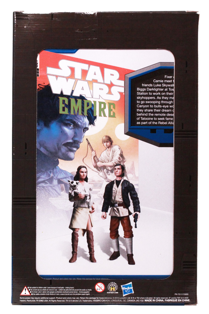 Old school Star Wars fans can rejoice as Hasbro has whipped up a great new comic pack NOT with Expanded Universe characters, but with characters who were cut out from the original 1977 film. Camie Marstrap and Laze "Fixer" Loneozner are two of Luke's friends who ended up on the editing room floor along with scenes involving Biggs Darklighter. Hasbro has already released the deleted scenes Biggs Darklighter figure years ago but finally you can reunite them all.