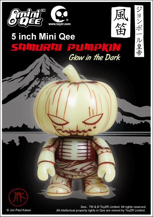 In addition to a standard release (see our story HERE), Jon-Paul Kaiser's Samurai Pumpkin Mini Qee will receive a glow-in-the-dark variant. Both releases - slated to drop next month in time for Halloween - mark the first characters in a new 5 inch Qee series from Toy2R.